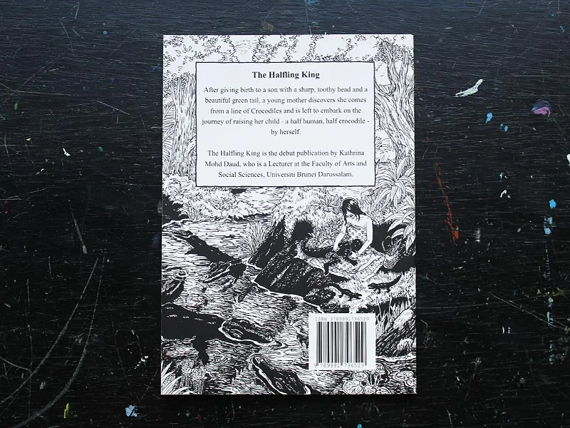 The Halfling King is an illustration project which is comprised of black and white drawings for the front and back covers as well as 5 interior full-page illustrations. The illustrations were hand-drawn using Faber-Castell PITT Pens and Chinese ink onto 250gsm watercolor paper before being digitized for the print file. The Halfling King is a wonderfully imaginative and poignant story by Dr Kathrina Daud, a lecturer at the Faculty of Arts & Social Sciences at the University of Brunei Darussalam. The story follows the birth and life of a half-human, half-crocodile boy through the perspective of his mother and is loosely based on a local Bruneian myth. This book is available through the publisher, Heartwrite Co.